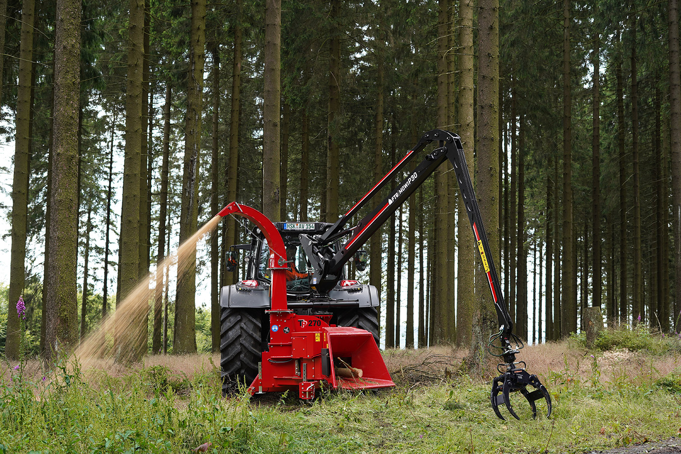 Датската дробилка TP270PTO-К е подходяща за раздробяване на храсти и клони с диаметър до 270 мм и е предназначена за заден монтаж на трактори с мощност между 100 и 200 кс. Задвижването става от силоотводния вал на трактора при 1000мин-1. Дробилката е оборудвана с две хоризонтални хидравлични захранващи ролки.